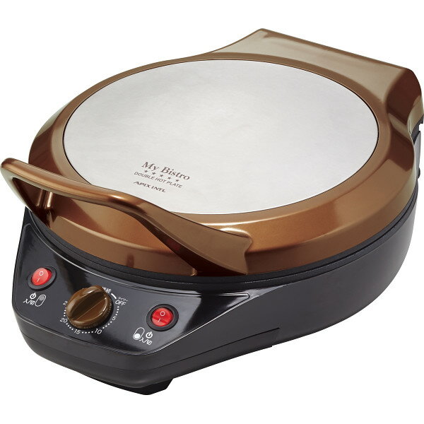 アピックス パイメーカー (APA-282)アピックス ワッフルメーカー ブラウン (ASW-284)アピックス ホットサンドメーカー (AHS-296)リラックマ ポップアップトースター (RK-14)2018年 贈りもの・お返しものギフト【アピックス ダブルホットプレート ブラウン (AWP-292)】広告文責(有)イースクエアTEL:0120-532-772■商品名称:アピックス ダブルホットプレート■色柄タイプ:ブラウン■メーカー品番:AWP-292■商品サイズ:現品約31×40.6×20.3cm・本体重量=約2.9kg■商品材料:フェノール樹脂、アルミダイキャスト(フッ素樹脂加工)、ステンレス■商品内容:電源=AC100V・消費電力=1200W(上下各600W)各プレート独立ON/OFFスイッチ、連続・タイマー(30分)付き■原産国:中国■包装種別:化粧箱入■箱サイズ(約):幅35.5cm×奥行22.5cm×高さ46.2cm■箱重量(約):3.5kg■のしサイズ:中杉■宅配便区分:常温※お客さま都合による、ご注文後の[キャンセル][変更][返品][交換]はお受けできませんのでご注意下さいませ。