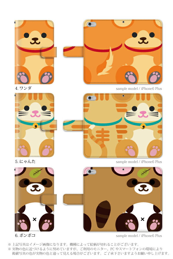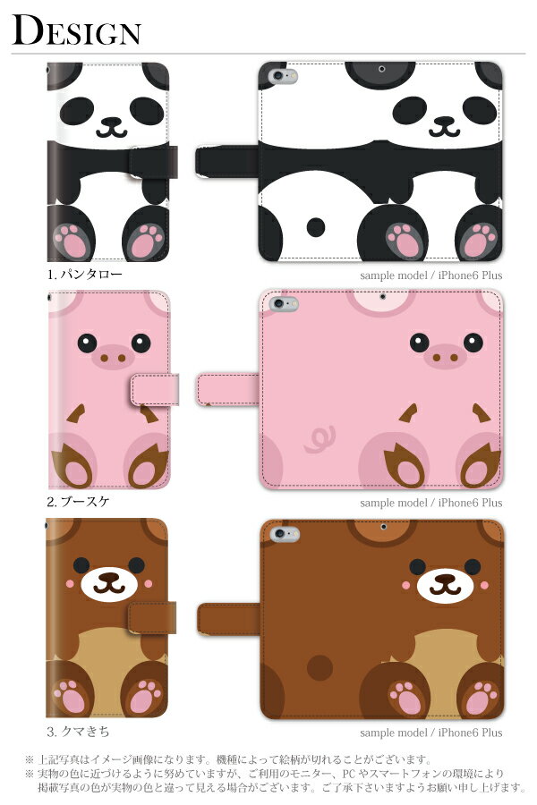 動物(パンダ、ブタ、クマ、犬、猫、タヌキ)のゆるキャラ(ゆるカワ)な 手帳型 ダイアリーケース。