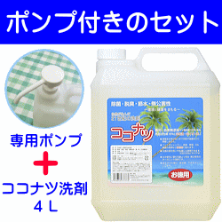 【迅速出荷!】『 ココナツ洗剤 4L 便利なポンプ付 』肌と環境に優しい多目的エコ洗剤』煩わしい詰め替え作業が不要!ボディソープに・フェイスウォッシュにシャンプー・食器洗い・洗濯用に・ハンドソープ洗車にもお奨め