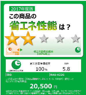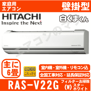 【土曜出荷OK】【送料無料(関東甲信/北陸中部/関西/東北のみ)】日立■RAS-V22G-W■ 2017年モデル【ステンレスクリーン 白くまくん-Vシリーズ-】[主に木造6畳 鉄筋8畳用][170サイズ]【あす楽対応】