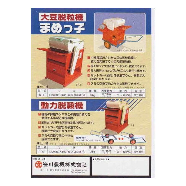 【ポイント貯まります】エントリーして購入でポイント5倍!【笹川農機】<三相200Vモーターセット品>大豆脱粒機 まめっ子 S-III