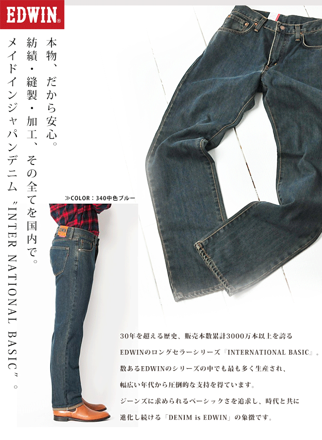 こちらは、30年を超える歴史、販売本数累計3000万本以上を誇る EDWINのロングセラーシリーズ『INTERNATIONAL BASIC』。